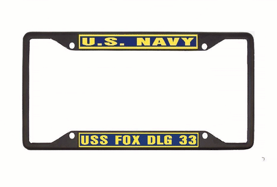 USS FOX DLG 33 License Plate Frame All-State Metal Military USN PF002
