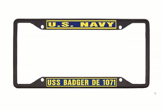 USS BADGER DE 1071 License Plate Frame All-State Metal Military USN PF002