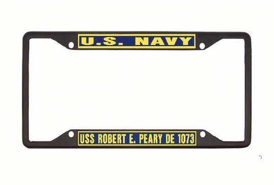 USS ROBERT E PEARY DE 1073 License Plate Frame All-State Metal Military USN PF002