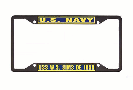USS W S SIMS DE 1059 License Plate Frame All-State Metal Military USN PF002