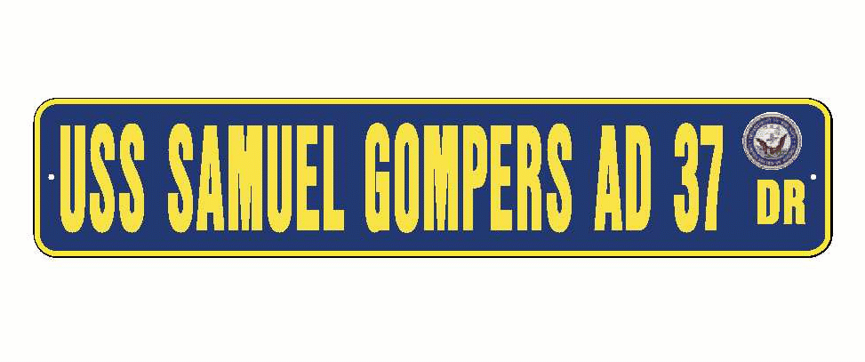 USS SAMUEL GOMPERS AD 37 Aluminum Street Sign Navy Blue / Yellow 6" x 30" Military USN SS002