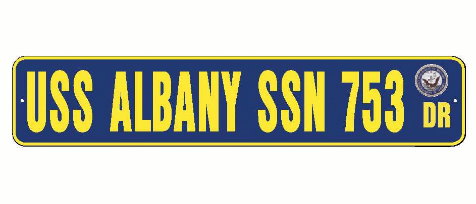 USS ALBANY SSN 753 Aluminum Street Sign Navy Blue / Yellow 6" x 30" Military USN SS002
