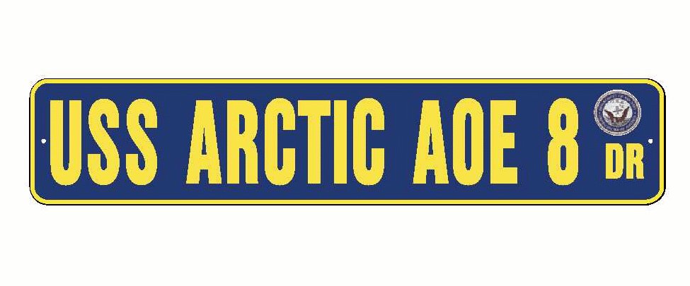 USS ARCTIC AOE 8 Aluminum Street Sign Navy Blue / Yellow 6" x 30" Military USN SS002