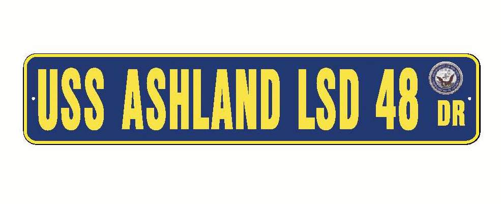 USS ASHLAND LSD 48 Aluminum Street Sign Navy Blue / Yellow 6" x 30" Military USN SS002