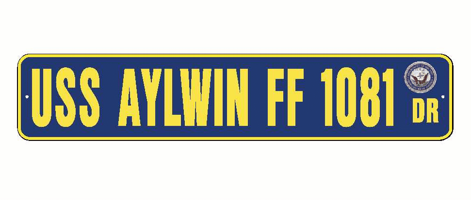 USS AYLWIN FF 1081 Aluminum Street Sign Navy Blue / Yellow 6" x 30" Military USN SS002