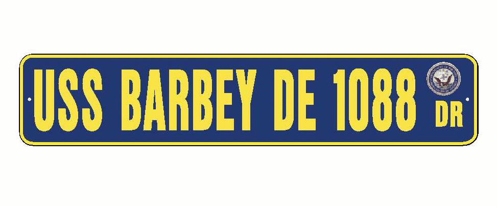 USS BARBEY DE 1088 Aluminum Street Sign Navy Blue / Yellow 6" x 30" Military USN SS002