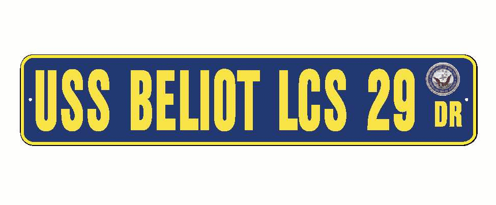 USS BELIOT LCS 29 Aluminum Street Sign Navy Blue / Yellow 6" x 30" Military USN SS002