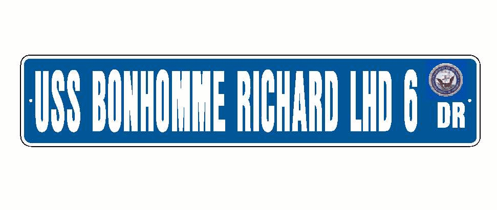USS BONHOMME RICHARD LHD 6 Aluminum Street Sign Blue / White 6" x 30" Military USN SS001