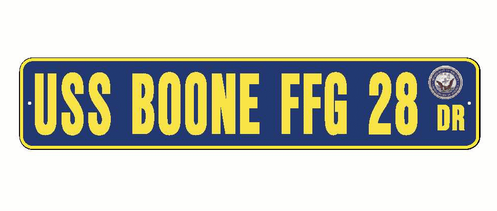 USS BOONE FFG 28 Aluminum Street Sign Navy Blue / Yellow 6" x 30" Military USN SS002