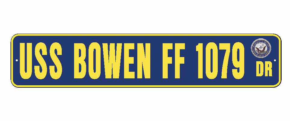 USS BOWN FF 1079 Aluminum Street Sign Navy Blue / Yellow 6" x 30" Military USN SS002