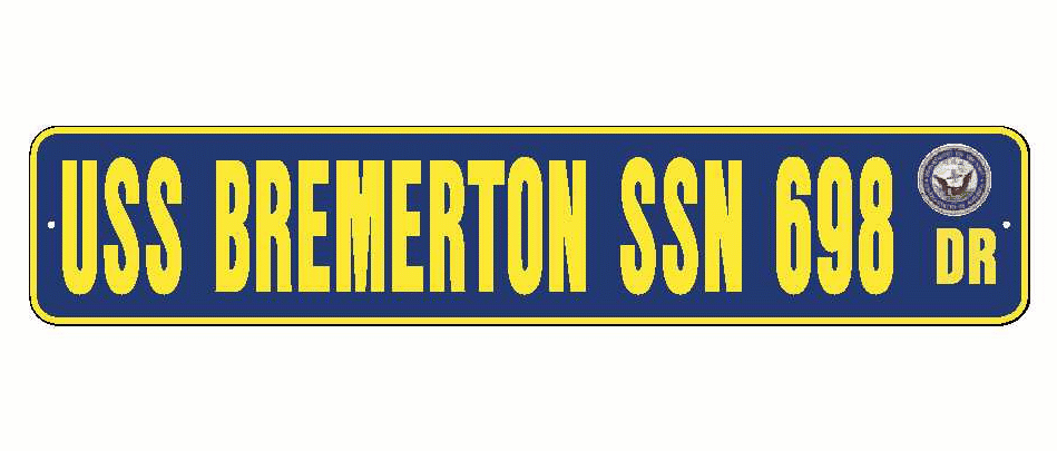 USS BREMERTON SSN 698 Aluminum Street Sign Navy Blue / Yellow 6" x 30" Military USN SS002