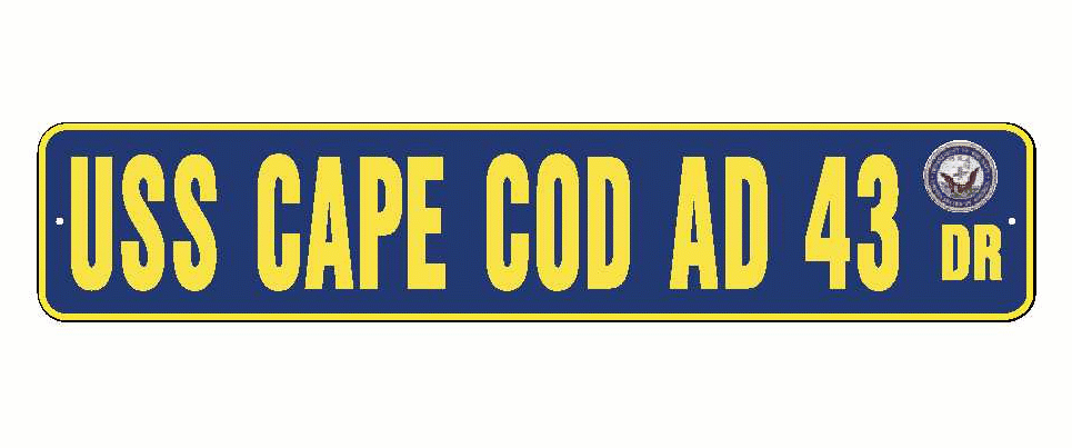USS CAPE COD AD 43 Aluminum Street Sign Navy Blue / Yellow 6" x 30" Military USN SS002