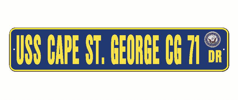 USS CAPE ST GEORGE CG 71 Aluminum Street Sign Navy Blue / Yellow 6" x 30" Military USN SS002