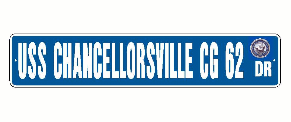 USS CHANCELLORSVILLE CG 62 Aluminum Street Sign Blue / White 6" x 30" Military USN SS001