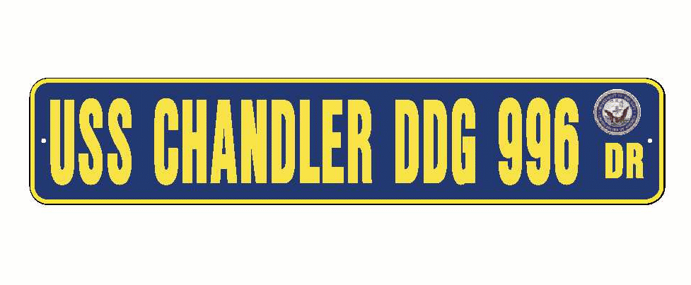 USS CHANDLER DDG 996 Aluminum Street Sign Navy Blue / Yellow 6" x 30" Military USN SS002