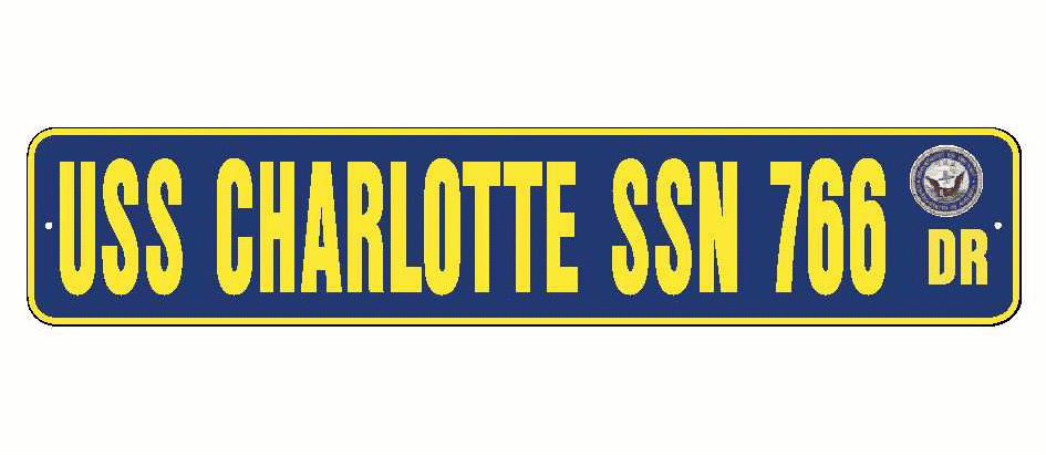 USS CHARLOTTE SSN 766 Aluminum Street Sign Navy Blue / Yellow 6" x 30" Military USN SS002
