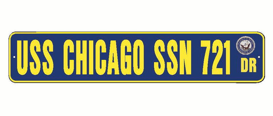 USS CHICAGO SSN 721 Aluminum Street Sign Navy Blue / Yellow 6" x 30" Military USN SS002