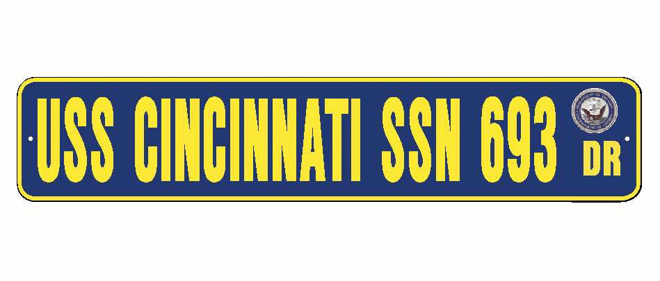 USS CINCINNATI SSN 693 Aluminum Street Sign Navy Blue / Yellow 6" x 30" Military USN SS002