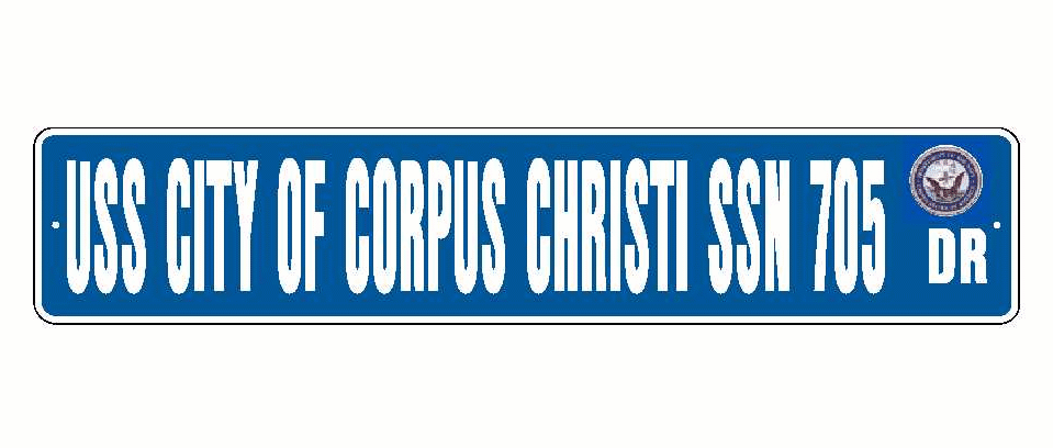 USS CITY OF CORPUS CHRISTI SSN 705 Aluminum Street Sign Blue / White 6" x 30" Military USN SS001