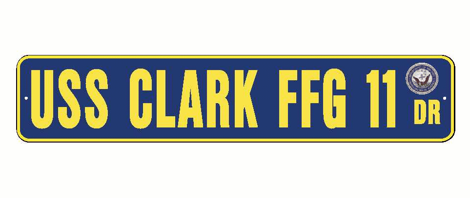 USS CLARK FFG 11 Aluminum Street Sign Navy Blue / Yellow 6" x 30" Military USN SS002