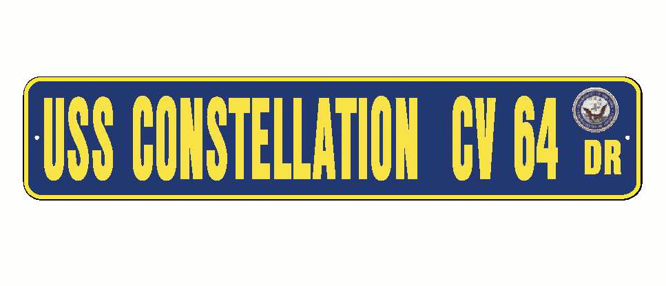 USS CONSTELLATION CV 64 Aluminum Street Sign Navy Blue / Yellow 6" x 30" Military USN SS002