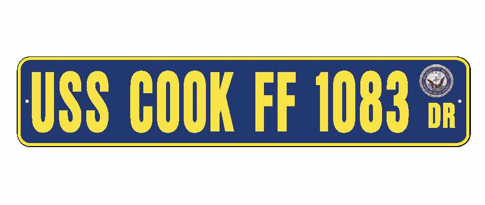 USS COOK FF 1083 Aluminum Street Sign Navy Blue / Yellow 6" x 30" Military USN SS002