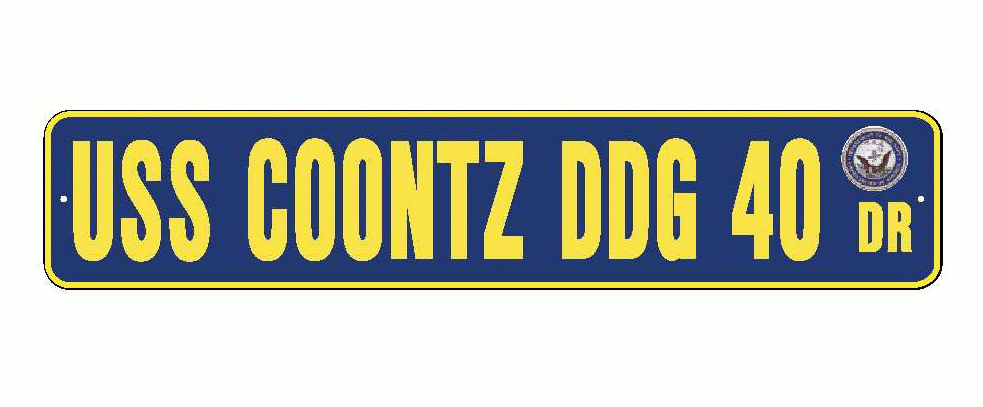 USS COONTZ DDG 40 Aluminum Street Sign Navy Blue / Yellow 6" x 30" Military USN SS002