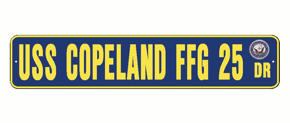 USS COPELAND FFG 25 Aluminum Street Sign Navy Blue / Yellow 6" x 30" Military USN SS002