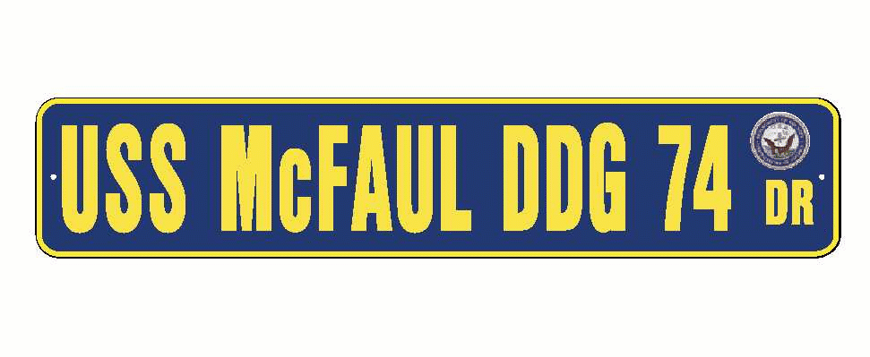 USS McFAUL DDG 74 Aluminum Street Sign Navy Blue / Yellow 6" x 30" Military USN SS002