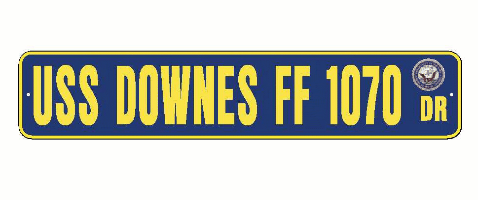 USS DOWNES FF 1070 Aluminum Street Sign Navy Blue / Yellow 6" x 30" Military USN SS002