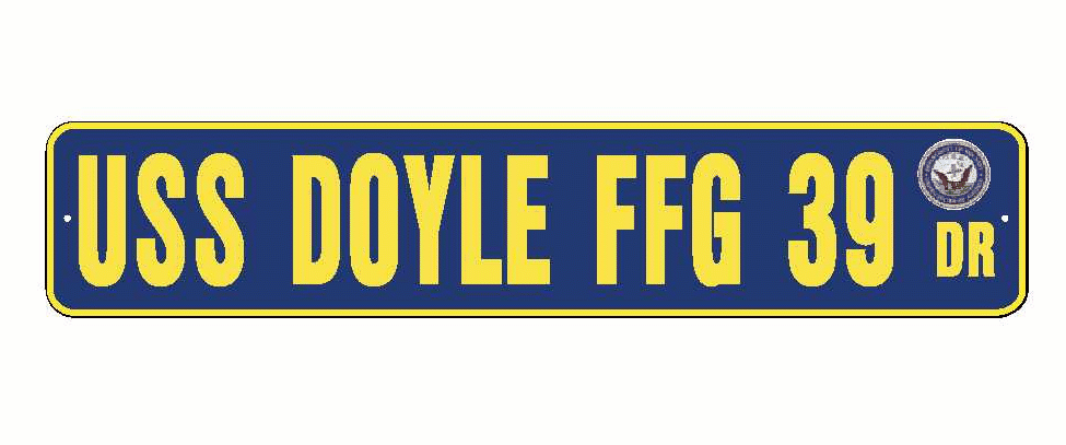 USS DOYLE FFG 39 Aluminum Street Sign Navy Blue / Yellow 6" x 30" Military USN SS002