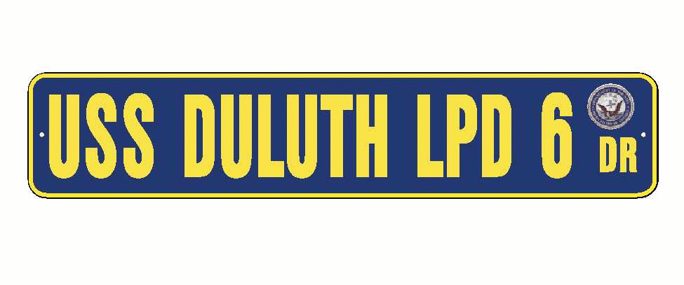 USS DULUTH LPD 6 Aluminum Street Sign Navy Blue / Yellow 6" x 30" Military USN SS002