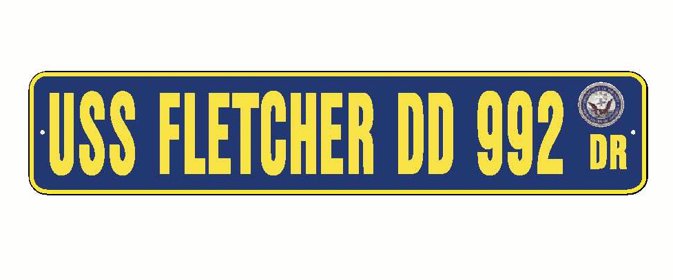 USS FLETCHER DD 992 Aluminum Street Sign Navy Blue / Yellow 6" x 30" Military USN SS002