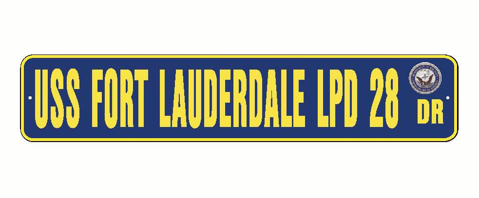 USS FORT LAUDERDALE LPD 28 Aluminum Street Sign Navy Blue / Yellow 6" x 30" Military USN SS002
