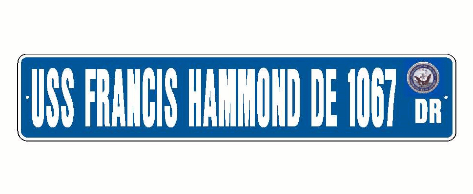 USS FRANCIS HAMMOND DE 1067 Aluminum Street Sign Blue / White 6" x 30" Military USN SS001