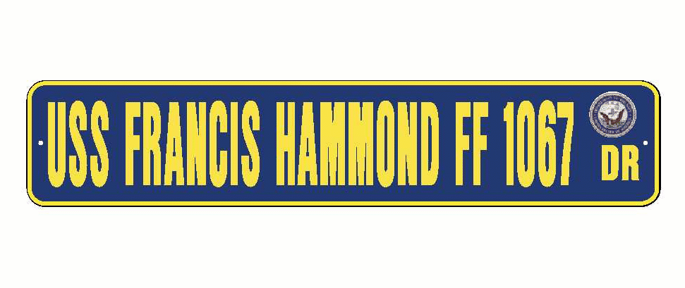 USS FRANCIS HAMMOND FF 1067 Aluminum Street Sign Navy Blue / Yellow 6" x 30" Military USN SS002