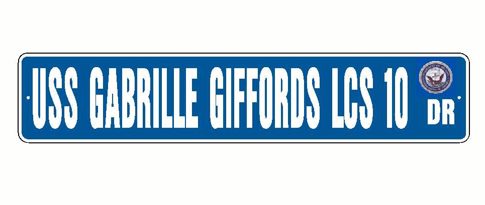 USS GABRIELLE GIFFORDS LCS 10 Aluminum Street Sign Blue / White 6" x 30" Military USN SS001