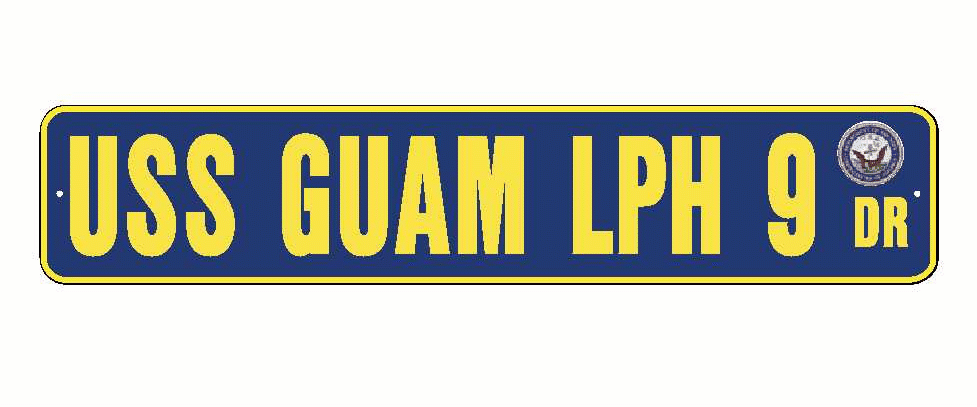 USS GAUM LPH 9 Aluminum Street Sign Navy Blue / Yellow 6" x 30" Military USN SS002