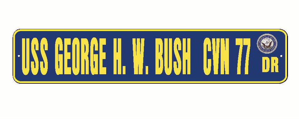 USS GEORGE H W BUSH CVN 77 Aluminum Street Sign Navy Blue / Yellow 6" x 30" Military USN SS002