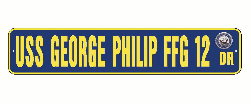 USS GEORGE PHILIP FFG 12 Aluminum Street Sign Navy Blue / Yellow 6" x 30" Military USN SS002