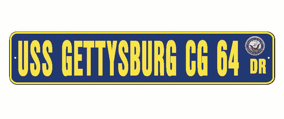USS GETTYSBURG CG 64 Aluminum Street Sign Navy Blue / Yellow 6" x 30" Military USN SS002
