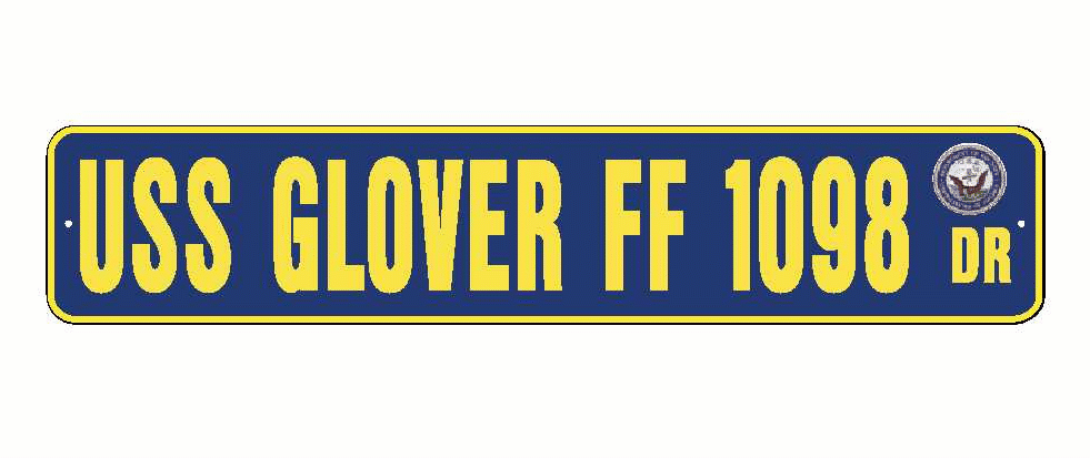 USS GLOVER FF 1098 Aluminum Street Sign Navy Blue / Yellow 6" x 30" Military USN SS002