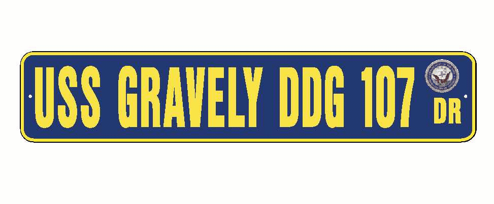 USS GRAVELY DDG 107 Aluminum Street Sign Navy Blue / Yellow 6" x 30" Military USN SS002