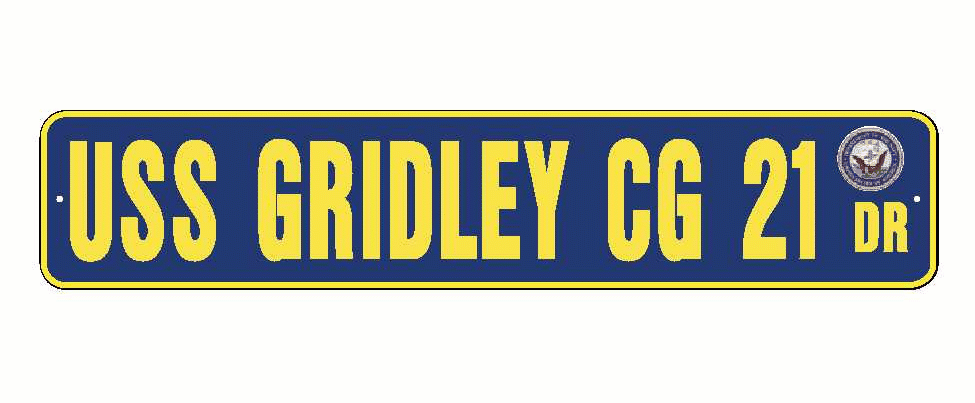USS GRIDLEY CG 21 Aluminum Street Sign Navy Blue / Yellow 6" x 30" Military USN SS002