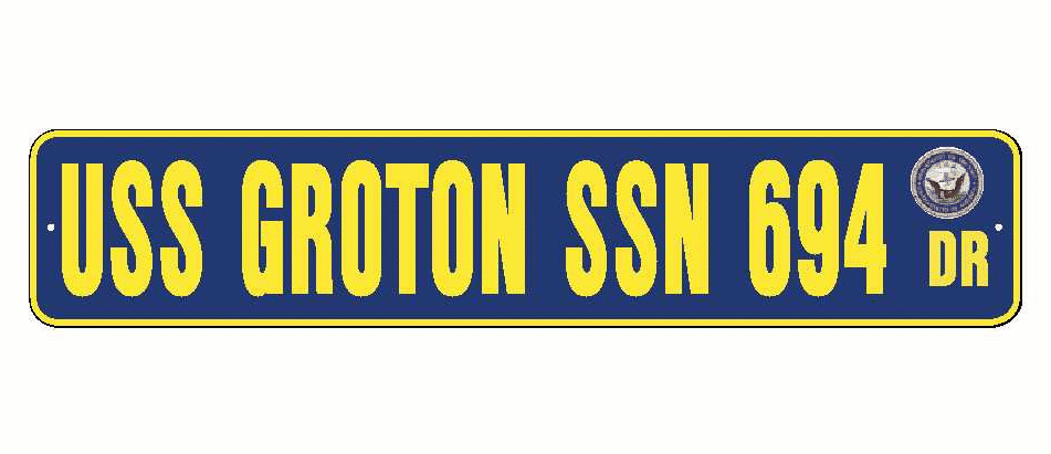 USS GROTON SSN 694 Aluminum Street Sign Navy Blue / Yellow 6" x 30" Military USN SS002