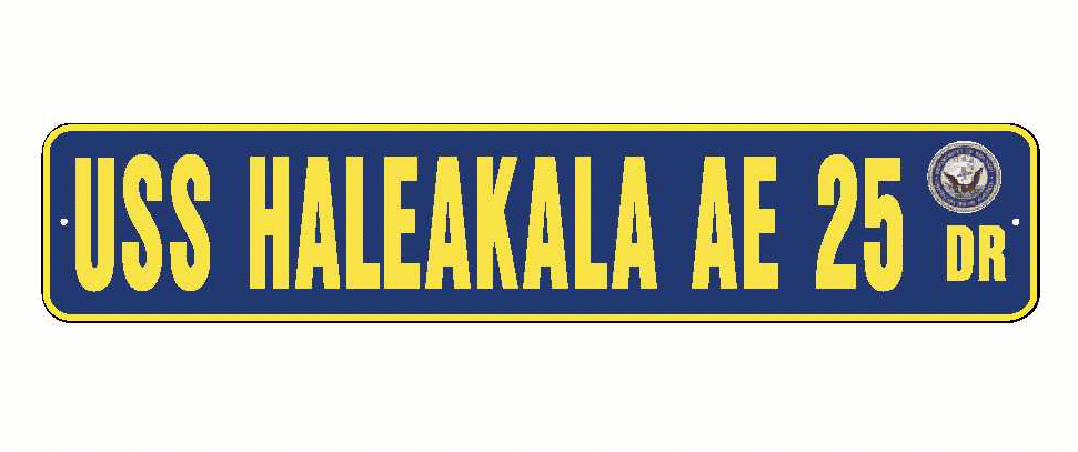 USS HALEAKALA AE 25 Aluminum Street Sign Navy Blue / Yellow 6" x 30" Military USN SS002