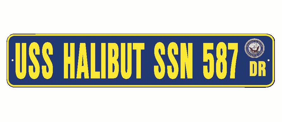 USS HALIBUT SSN 587 Aluminum Street Sign Navy Blue / Yellow 6" x 30" Military USN SS002