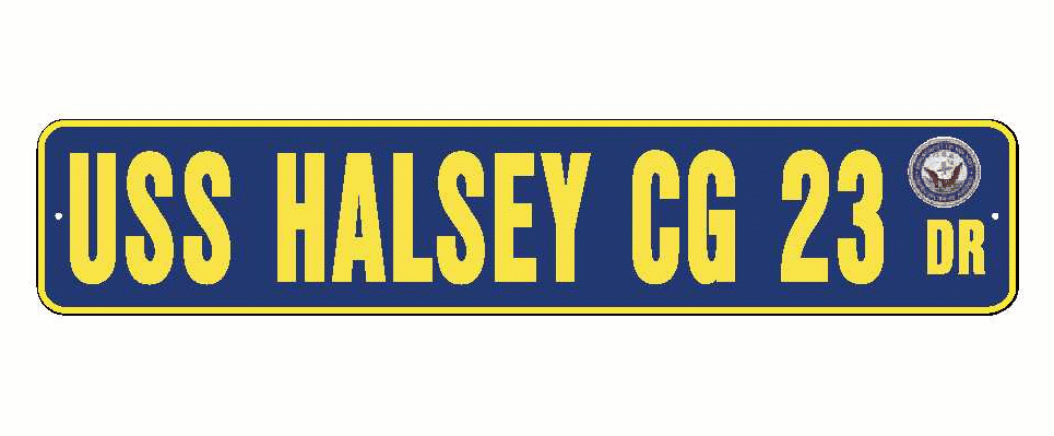 USS HALSEY CG 23 Aluminum Street Sign Navy Blue / Yellow 6" x 30" Military USN SS002