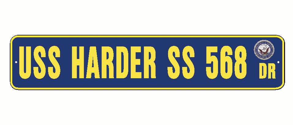 USS HARDER SS 568 Aluminum Street Sign Navy Blue / Yellow 6" x 30" Military USN SS002