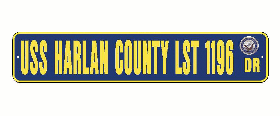 USS HARLAN COUNTY LST 1196 Aluminum Street Sign Navy Blue / Yellow 6" x 30" Military USN SS002